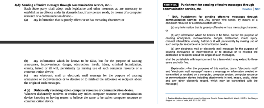 Section 4(d) in India’s submission is an exact replica of the language used in the erstwhile Section 66A of the Information Technology Act.