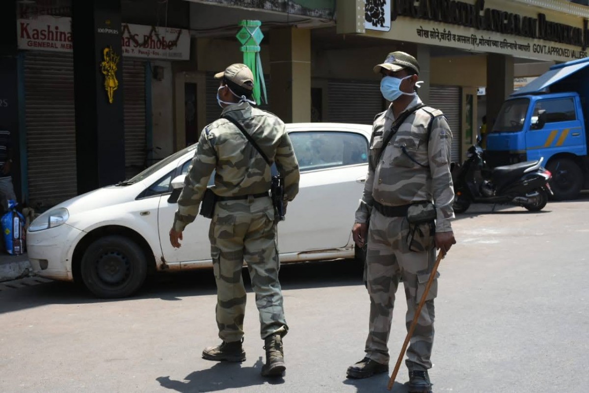 CISF personnel patrol a Panaji street during the lockdown. Photo: The Wire