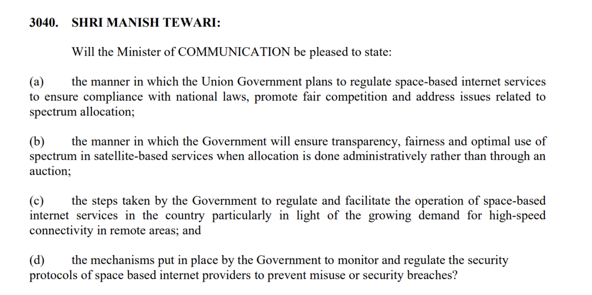 In March this year, Congress MP Manish Tewari had asked the communications minister (Jyotiraditya Scindia) in Lok Sabha about satellite-based internet services. At that time, the government did not disclose the list of any applicants.