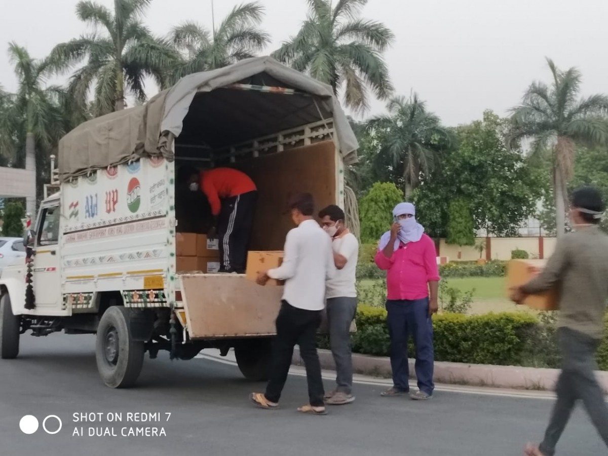 Cartons of Remdesivir that arrived from Gujarat being loaded on a truck at Lucknow airport. Courtesy: BSTV