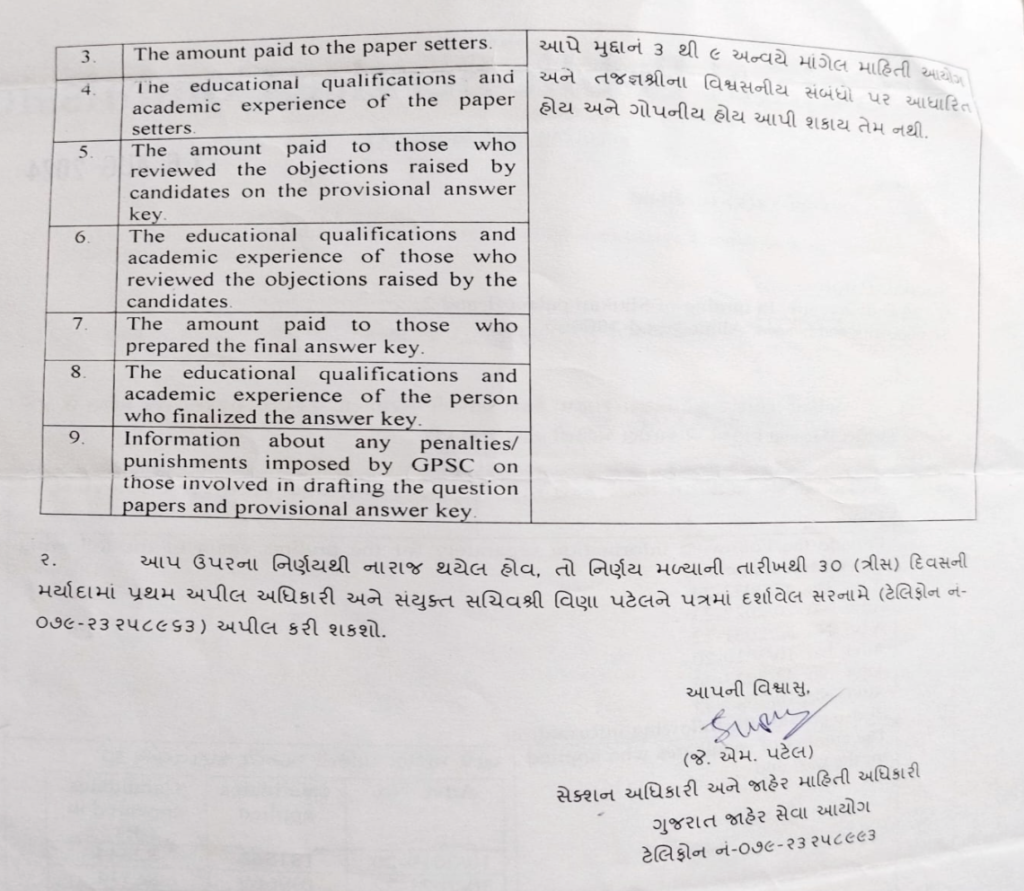 In response, GPSC stated that the information sought is related to fiduciary relationship with the experts, that it is a secret and hence cannot be disclosed. In my RTI request, I sought information regarding the penalties and punishments imposed on paper setters, but GPSC did not provide this information either.