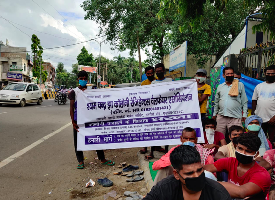 Residents of the Shyam Chandra Jha Colony in Gurugram at the protest. Photo: Ismat Ara