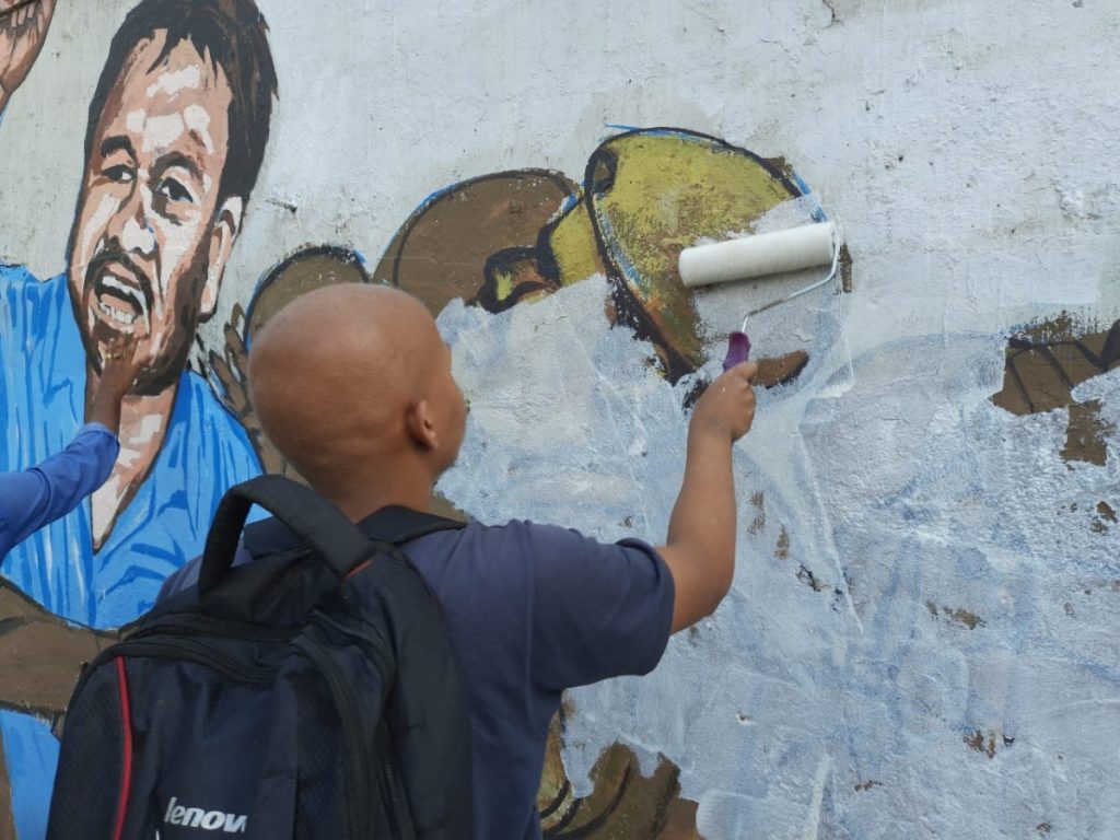 The four artists who belong to the group Anga Art were let off by police after a while. However, they eventually ended up painting over the whole mural.
