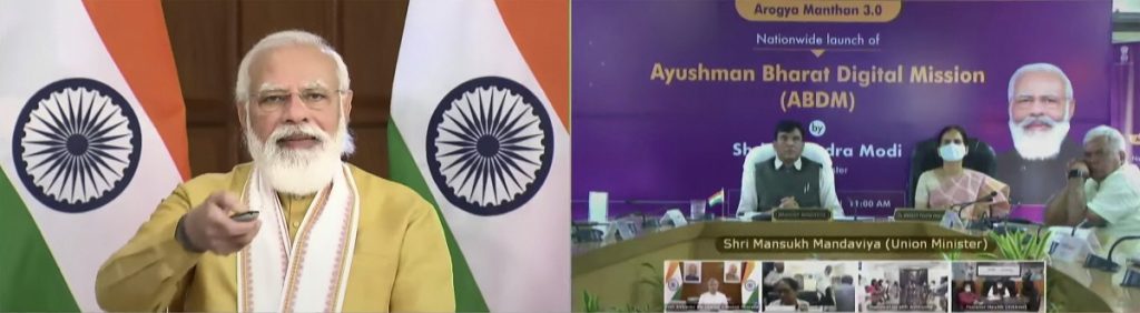 Prime Minister Narendra Modi virtually launches Ayushman Bharat Digital Mission, in New Delhi, September 27, 2021. Photo: Screengrab via PTI