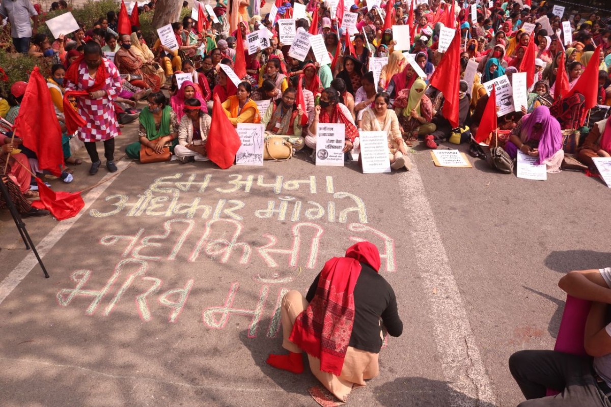 Anganwadi workers protesting in Delhi. Photo: Astha