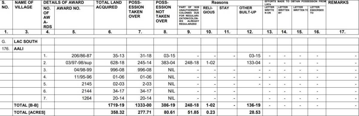 Snapshot of land acquistion in Aali village. Source: Author, Revenue Department, Govt. of NCT of Delhi.