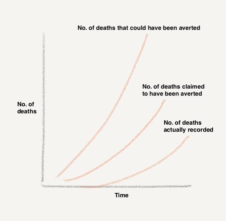 According to Paul, “The Ministry of Statistics and Programme Implementation has estimated that based on a rational model, the lockdown prevented as many as 14-29 lakh COVID-19 cases and 37,000 to 78,000 deaths (with point estimates of 20 lakh and 54,000, respectively) by mid-May.” The fatality estimates pertain to the middle curve. However, it is hard to see how Paul et al claim the estimate that the lockdown averted 54,000 deaths by May 15 to be both good and right without knowing the number of deaths that could have been averted overall (upper curve) and without explaining the fatality undercounting (reflected in the lower curve) that report after report by experts have found.