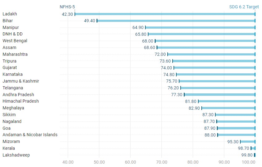 While the national sanitation campaigns have been launched since the 1980s with the goal of increasing sanitation coverage, the United Nations' Sustainable Development Goal (SDG) 6.2 of achieving 100% access to adequate and equitable sanitation, and ending open defecation by 2030, remains elusive. This trend is exhibited in the recently released government’s NFHS-5 data.