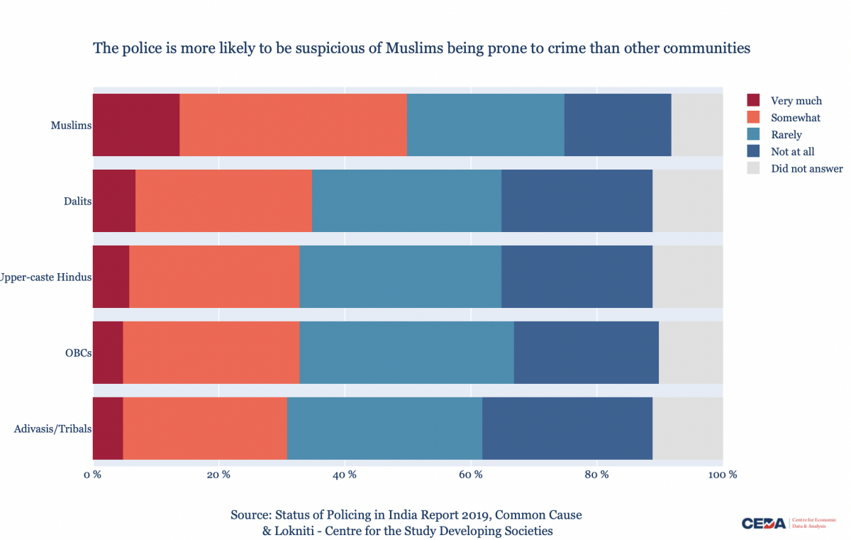 The police is more likely to be suspicious of Muslims being prone to crime than other communities. Credit: Centre for Economic Data and Analysis