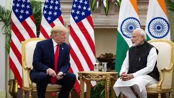 Prime Minister Narendra Modi speaks to US President Donald Trump during a meeting at Hyderabad House in New Delhi (Photo: Reuters)