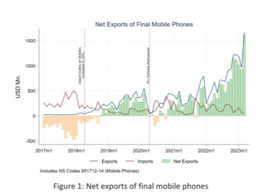 "When mobile phones exports really take off from the last quarter of 2021 (figure 1), there's a commensurate rise in net imports of inputs (figure 2)," he writes.
