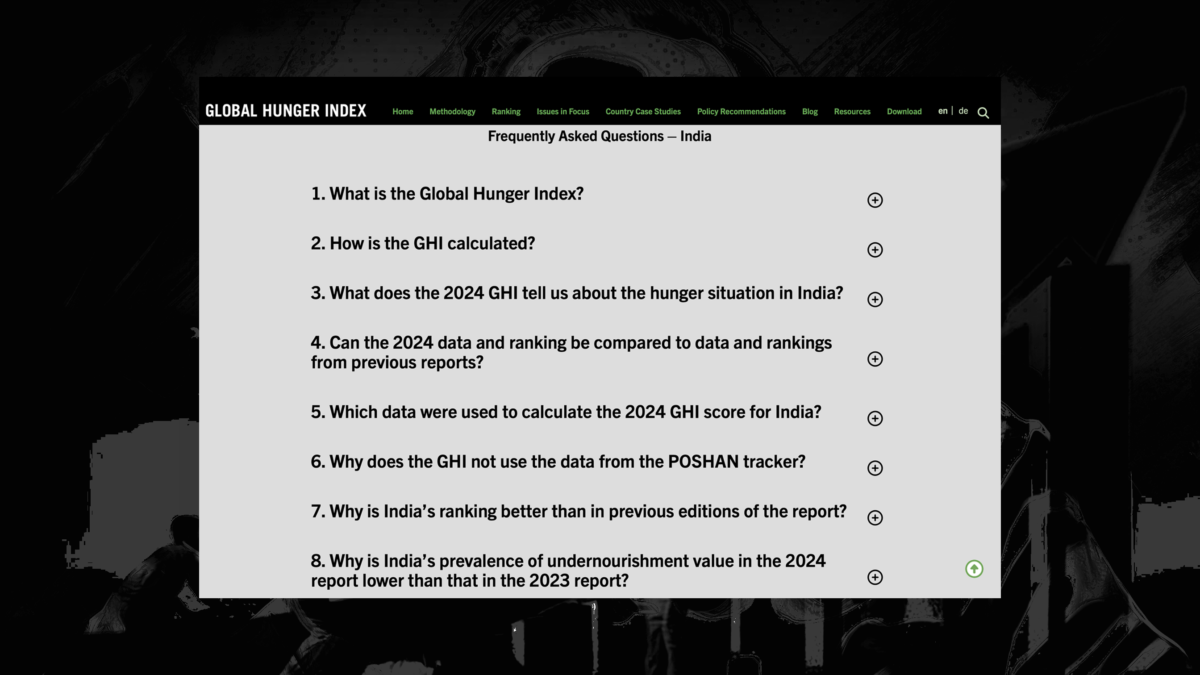 The Global Hunger Index has an FAQ page dedicated solely to India – a unique feature. The FAQ answers several queries the government of India has been regularly asking of the non-profits.