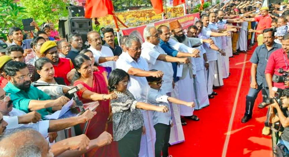 Kerala chief minister Pinarayi Vijayan participates in a human chain against the CAA. Photo: Twitter/@vijayanpinarayi