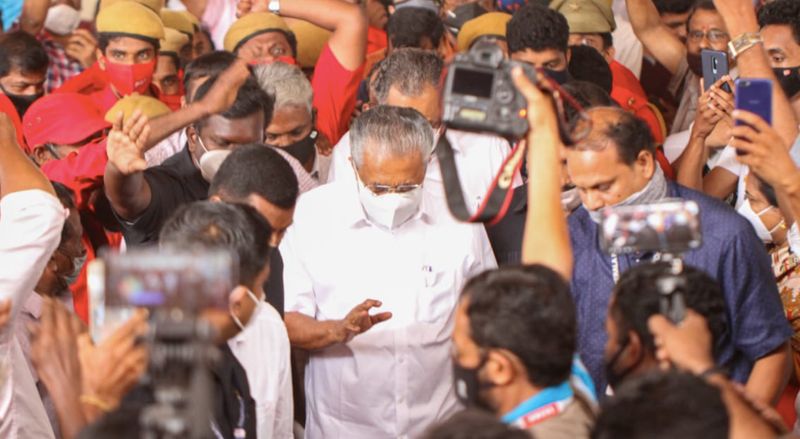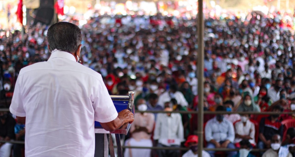 Vijayan at Mananthavady ahead of the Kerala assembly polls. Photo: Twitter/@vijayanpinarayi