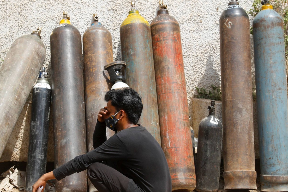 A man waits outside a factory to get his oxygen cylinder refilled, amidst the spread of the coronavirus disease (COVID-19) in New Delhi, India, April 28, 2021. Photo: Reuters/Adnan Abidi