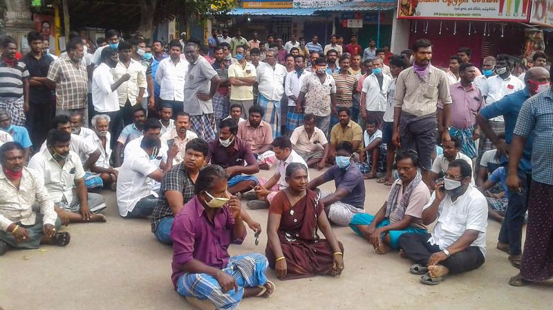 Villagers stage a protest in solidarity with Thoothukudi custodial death victims in Sathankulam. Photo: PTI