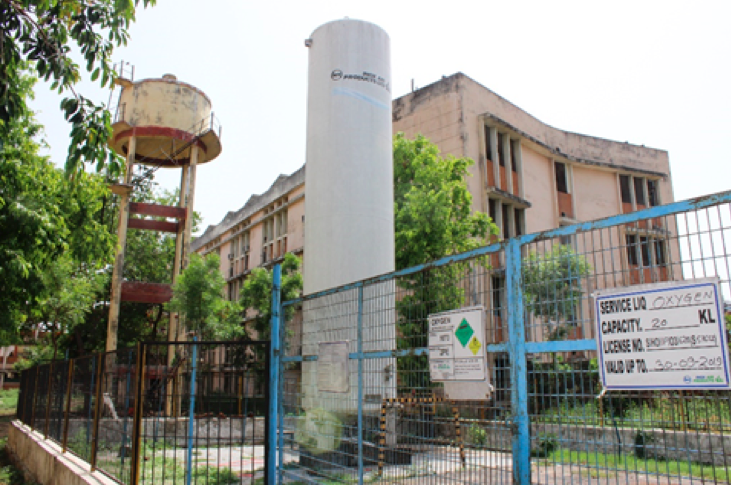 The liquid oxygen tank at BRD Medical College, which supplied piped liquid oxygen across the hospital. Photo: Anoo Bhuyan