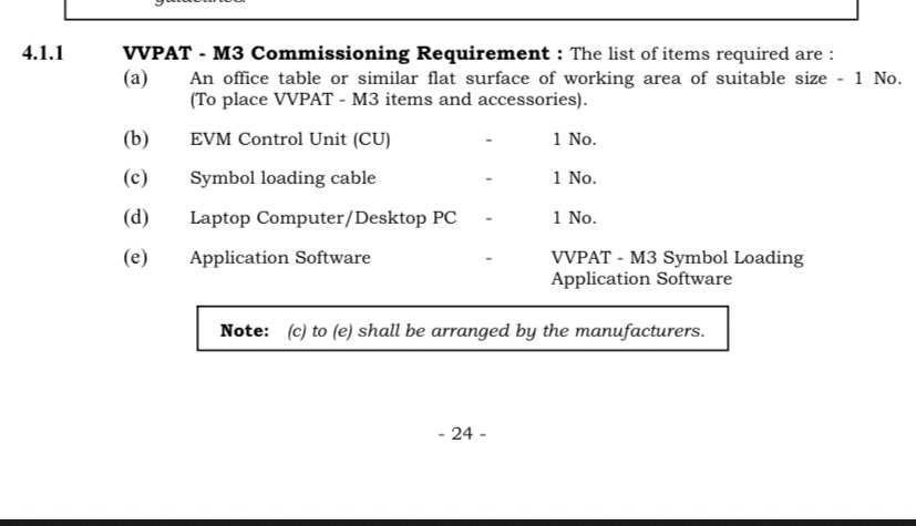 However, the VVPAT user manual prepared by the Bharat Electronics Limited (BEL) under the authority of the ECI mentions that a “laptop computer/desktop PC” is required for the commissioning of VVPAT.