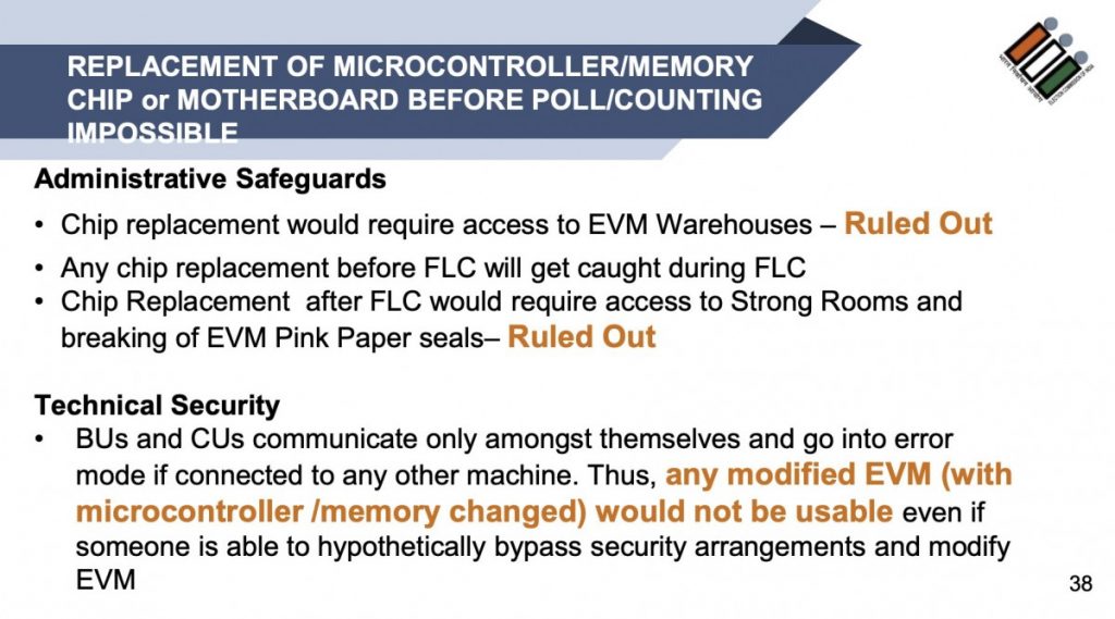 The ECI has maintained that their EVMs are robust and tamper-proof and even the manufacturers cannot manipulate them at the time of production. But strangely, the ECI has not responded to concerns raised by Gopinathan, journalists and civil society activists.