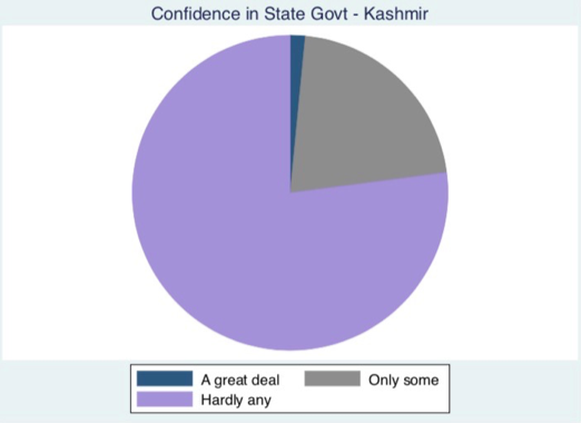 In fact, the India Human Development Survey (IHDS) shows that households in selected districts of Kashmir, report relatively much lower confidence in institutions than the rest of the country.