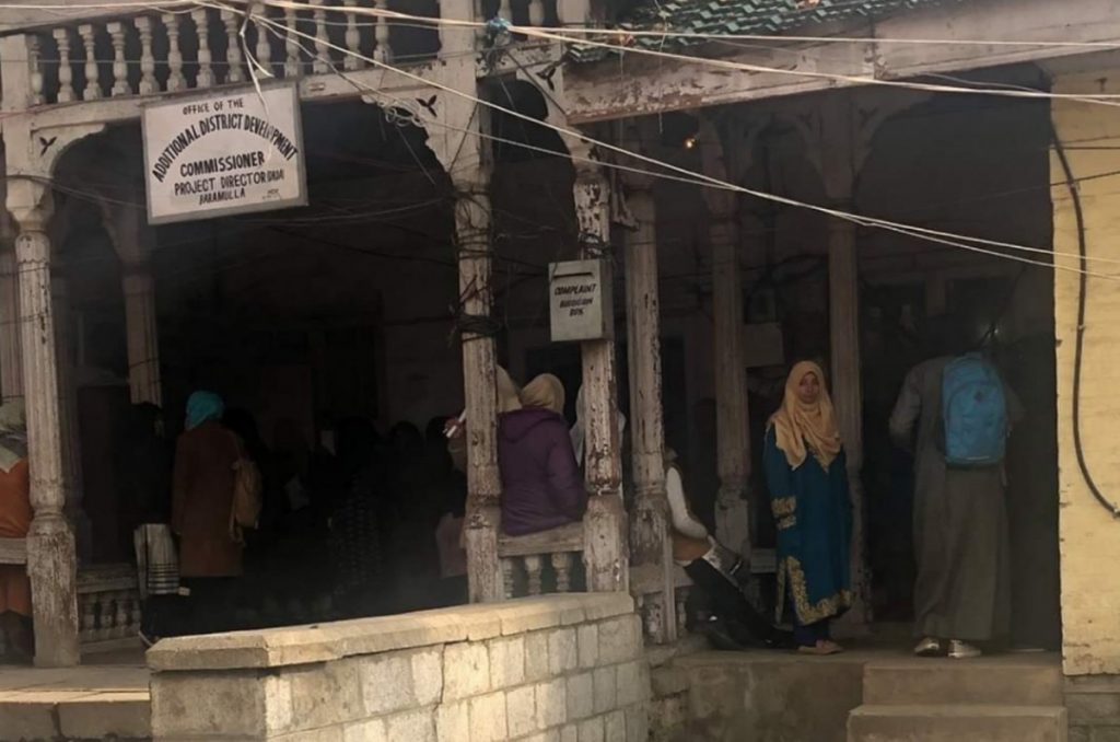 Kashmiris queue up in the cold outside a government office to access the internet. Photo: Twitter
