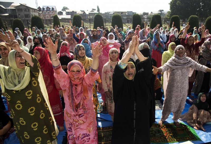 Women participate in Eid prayers at a shrine in Soura on August 12. Photo: Muzamil Bhat