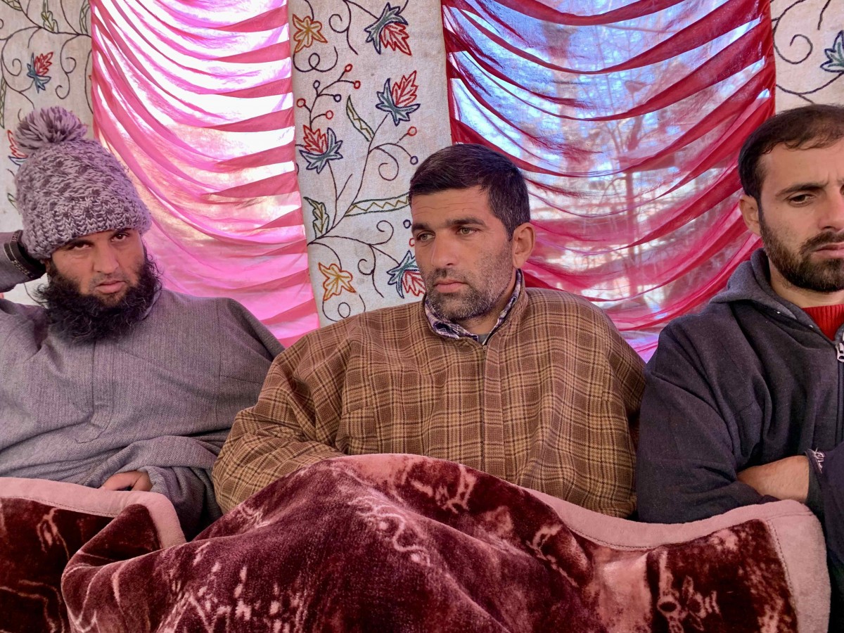 Altaf Ahmad, father of Afaan Altaf, one of the two minors who died in the outbreak, in a tent for mourners outside his house. Photo: Jehangir Ali