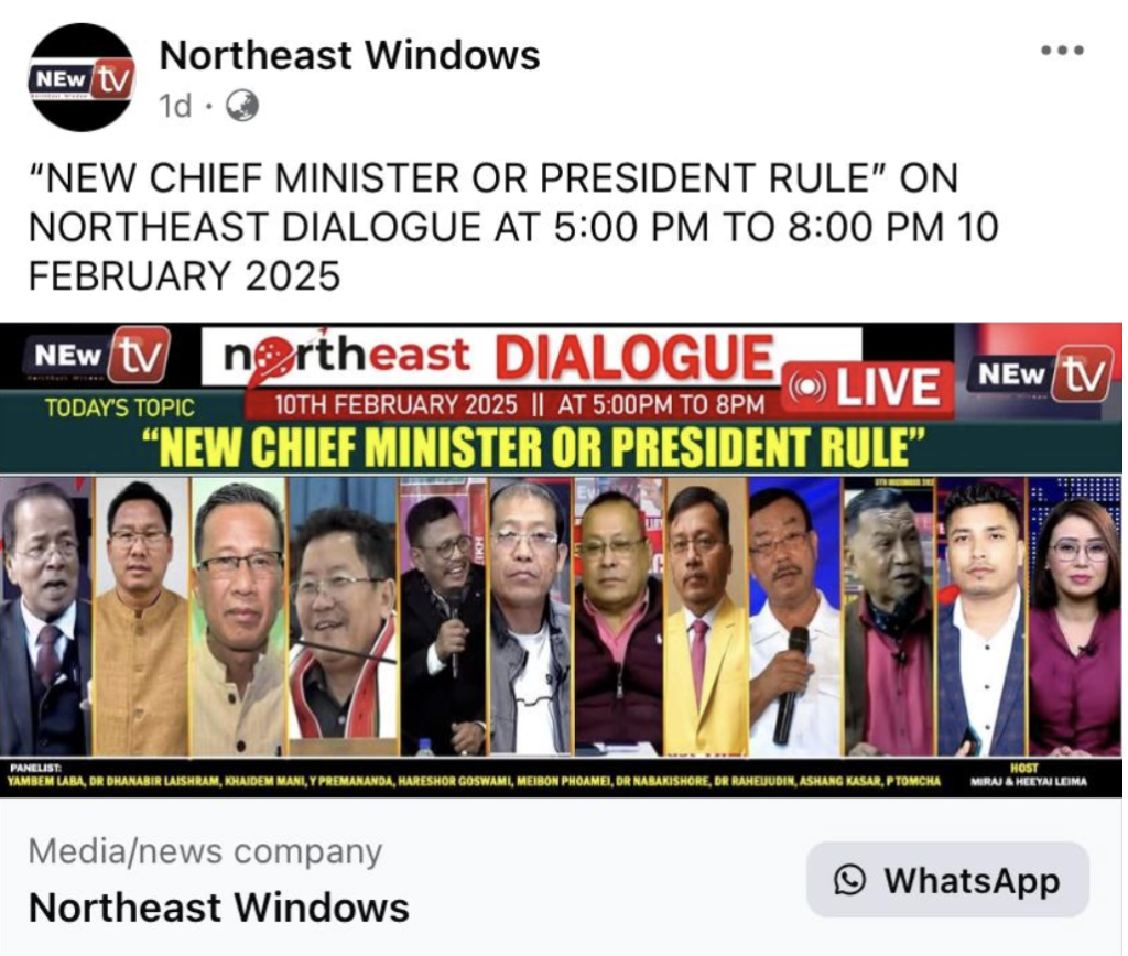 A screengrab of Northeast Windows' post on the show in which Laba Yambem appeared.