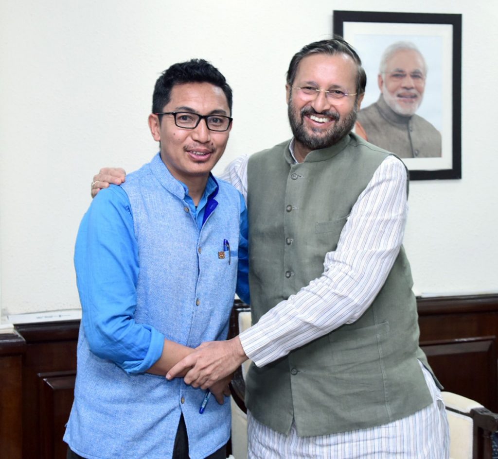 Jamyang Tsering Namgyal with Prakash Javadekar, in 2019. Photo: PIB