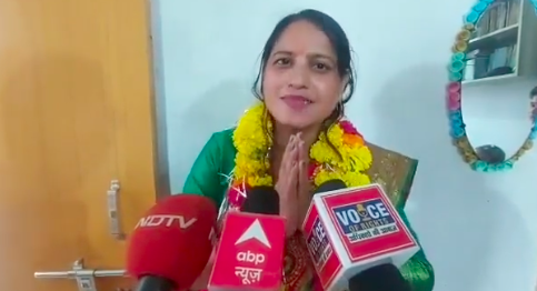 AIMIM's Aruna Upadhyay, who won from Khargone's Ward 2. Photo: Video screengrab from Twitter/@KashifKakvi