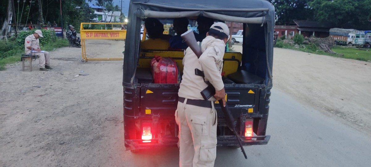 Manipur police checking the back of an auto. Photo: Twitter/@manipur_police