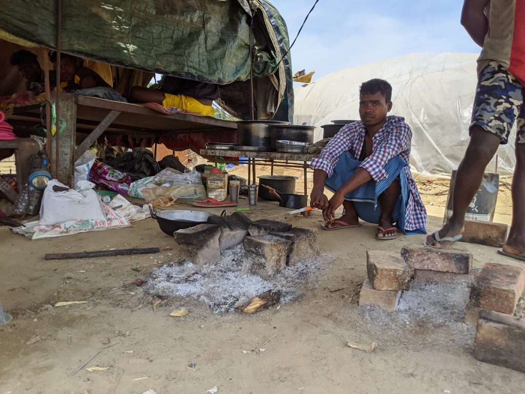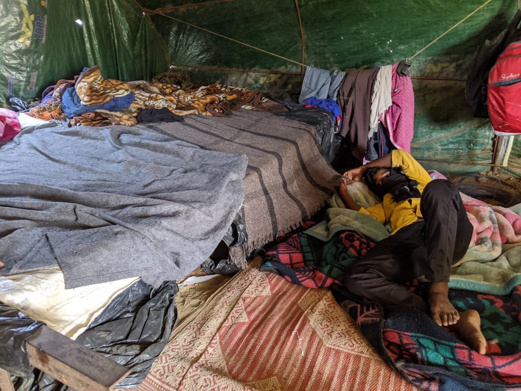 The daily wagers working on the construction site are still living here in two small make-shift tents. They are running out of food.