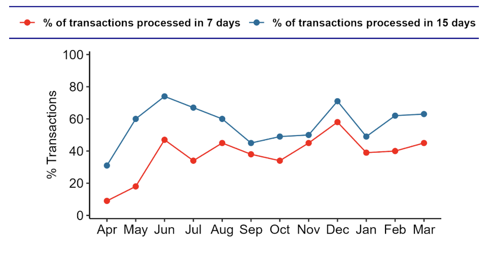 Figure 1: Percentage of transactions processed within 7 and 15 days over the months in FY 2021-22