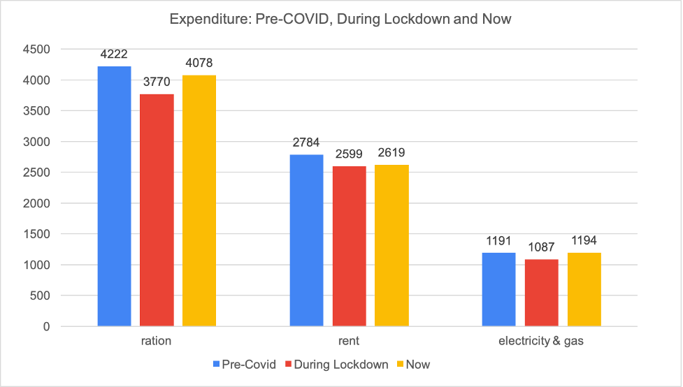 The drastic fall in incomes during the lockdown inflicted significant financial distress for workers and their families. Pre-pandemic, most incomes were spent by respondents on basic expenses (rent, food, medical costs etc.) rendering negligible savings to fall back on.