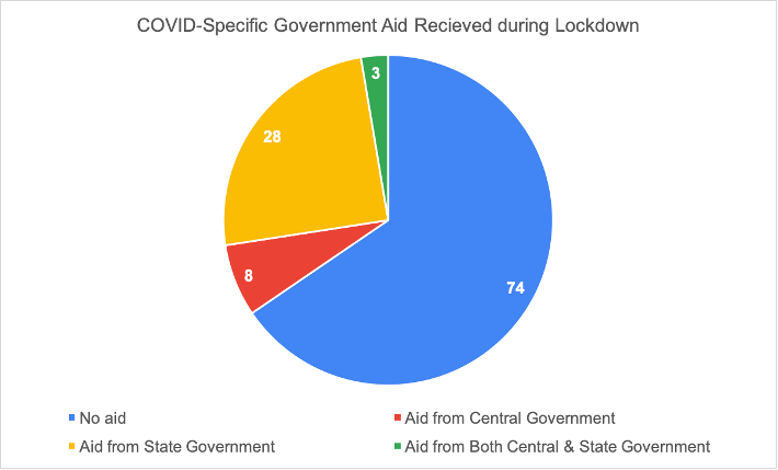 When asked why the state didn’t help, most respondents said that almost all government aid – mostly referring to ration – was provided to those migrant workers who had returned to their native villages and hometowns during the lockdown. Those who stayed back were largely ignored and left to fend for themselves or receive support from non-state actors. Moreover, anyone who managed to receive some aid criticised the state for doing too little too late. The figure below has more details.