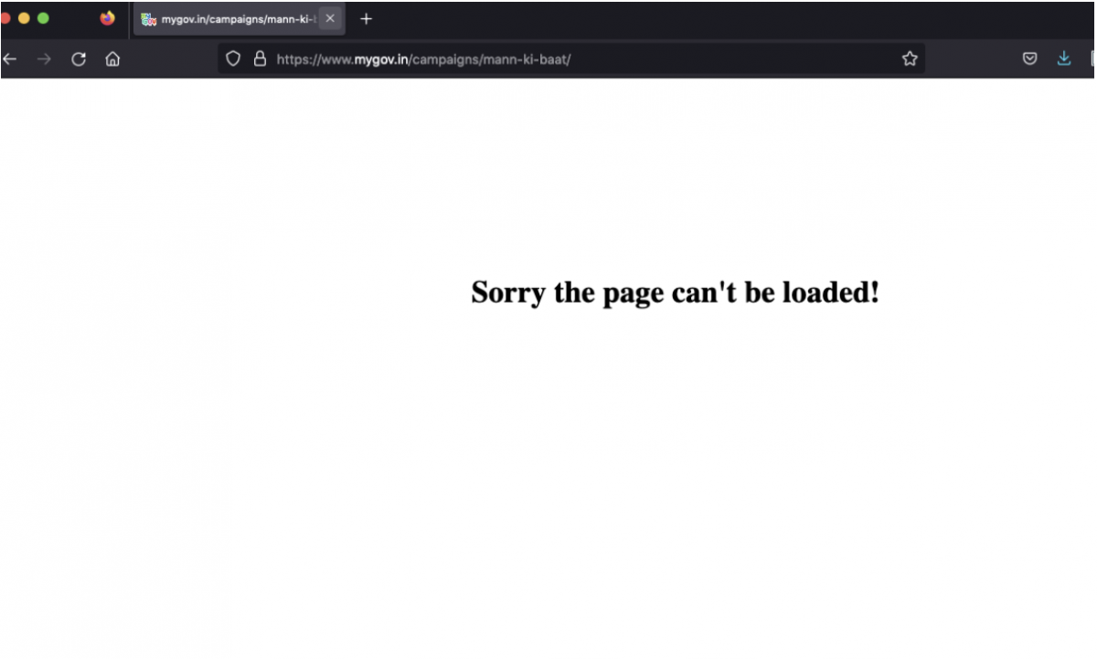 A screenshot of the "Maan ki baat" page doesn’t load anymore on mygov website. Photo: https://www.mygov.in/campaigns/mann-ki-baat/