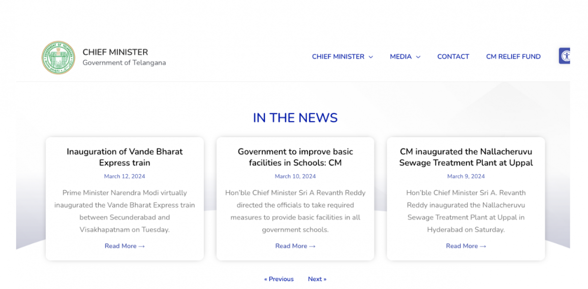 A screenshot of Telangana chief minister’s Website with placeholder Images. Photo: https://cm.telangana.gov.in/