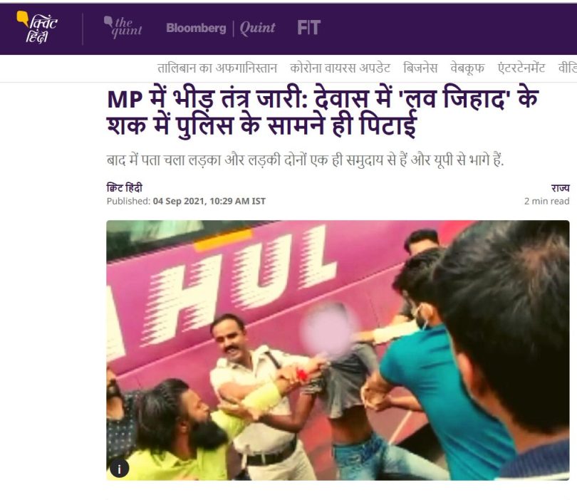 Alt News performed a keyword search and found an article by the New Indian Express dated September 4, stating that a 16-year-old boy was thrashed in Dewas, Madhya Pradesh where he had eloped with a 12-year-old girl. Locals thought that he was Muslim and had taken her under false pretences. Alleging ‘love jihad’, the mob beat him up. The police were quoted as saying that both the boy and girl were Hindus and residents of Uttar Pradesh.