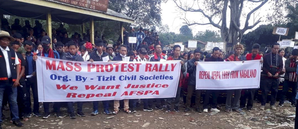 Locals stage a protest demanding repeal of the Armed Forces (Special Powers) Act in Mon district of Nagaland, December 11, 2021. Photo: PTI