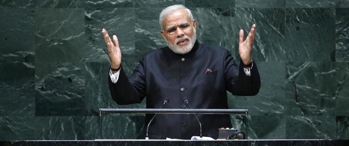 Prime Minister Narendra Modi addresses the 69th UN General Assembly at the UN headquarters in New York September 27, 2014. Photo: Reuters/Eduardo Munoz