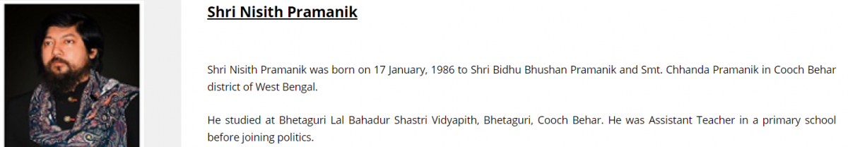 The noticeable omission of Nisith Pramanik's highest educational qualification on the ministry of home affairs website.