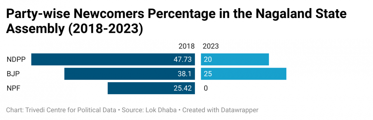 Out of the 25 seats the NDPP won, 7 were newcomers: Hekhani Jkhalu (Dimapur - III), Salhoutuonuo Kruse (Western Angami), K.G. Kenye (Chizami), Imkongmar (Mongoya), Temjenmenba (Jangpetkong), G. Ikuto Zhimomi (Aghunato) and W. Chingang Konyak (Wakching). Even though Salhoutuono Kruse managed to win her seat by only 7 votes, she and Hekani Jakhalu are the first two women elected to the state assembly since its creation in 1963.