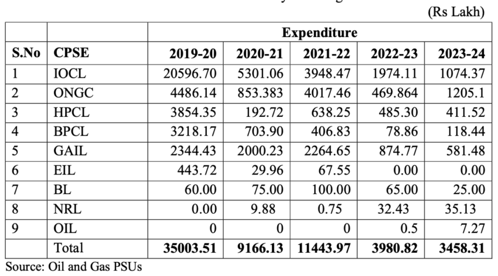 A question was asked in the Rajya Sabha on corporate social responsibility expenditure by oil PSUs in Odisha for the past five years.
