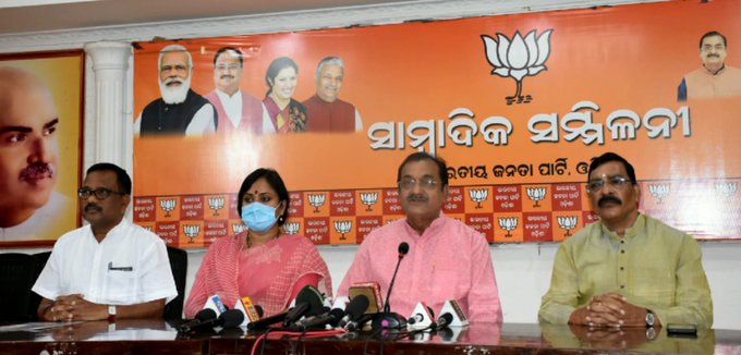 BJP Odisha leaders at a press conference after the panchayat election results were announced. Photo: Twitter/@bjp4odisha