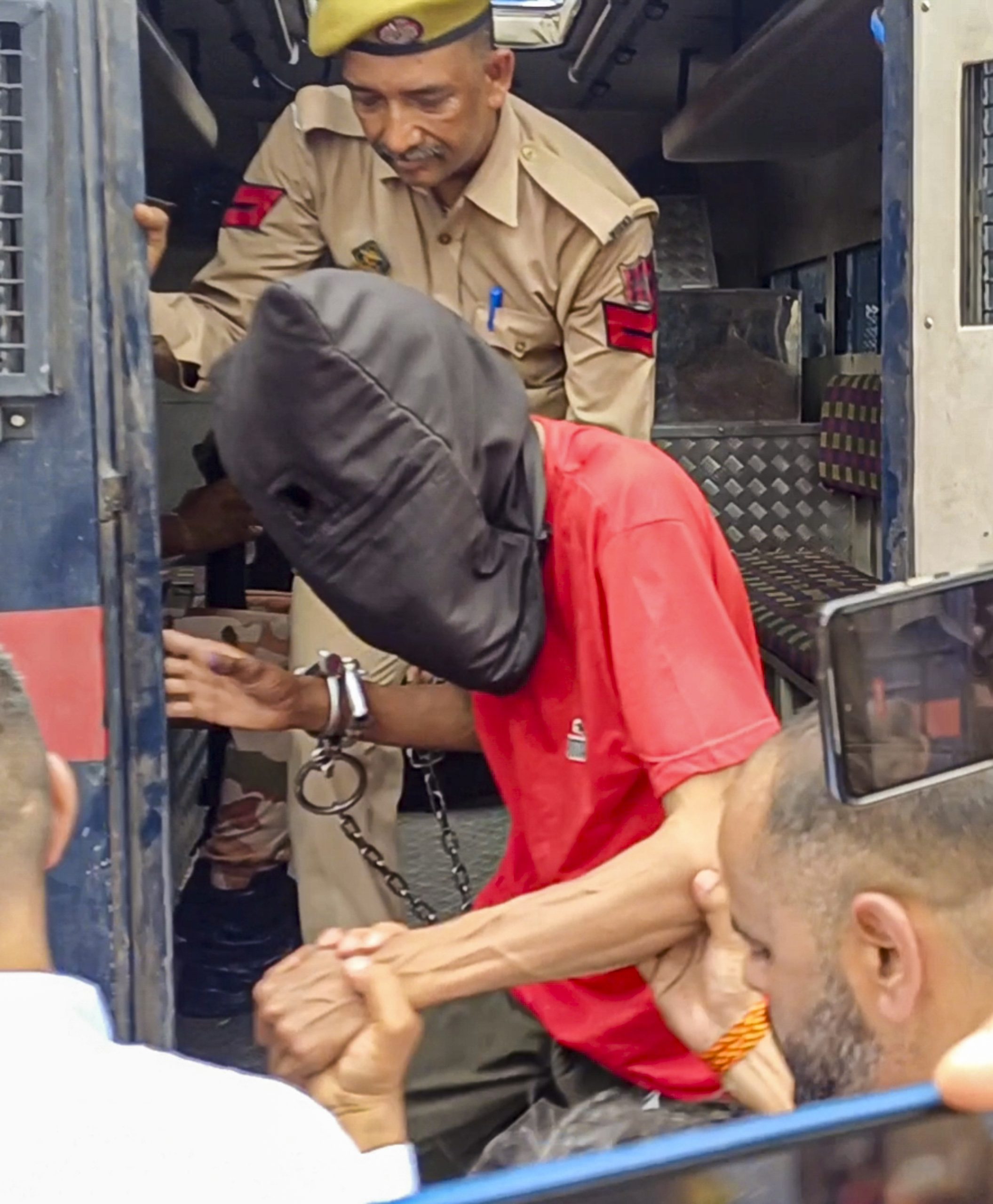 An accused who was arrested by the NIA for allegedly harbouring terrorists responsible for the Pahalgam terror attack is being produced before a court, in Jammu on Monday, June 23, 2025. Photo: PTI