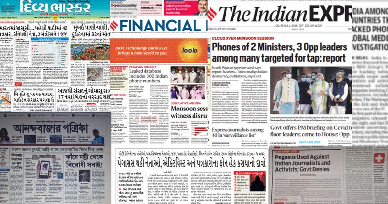 Bangla newspaper Anandabazar Patrika carried the story as the lead on its front page, headlined "Surveillance weapon on the phone", with an infographic explaining how the software works. Divya Bhaskar, the most widely circulated Gujarati newspaper, along with Sandesh and Gujarat Samachar, also published the report on their front pages.
