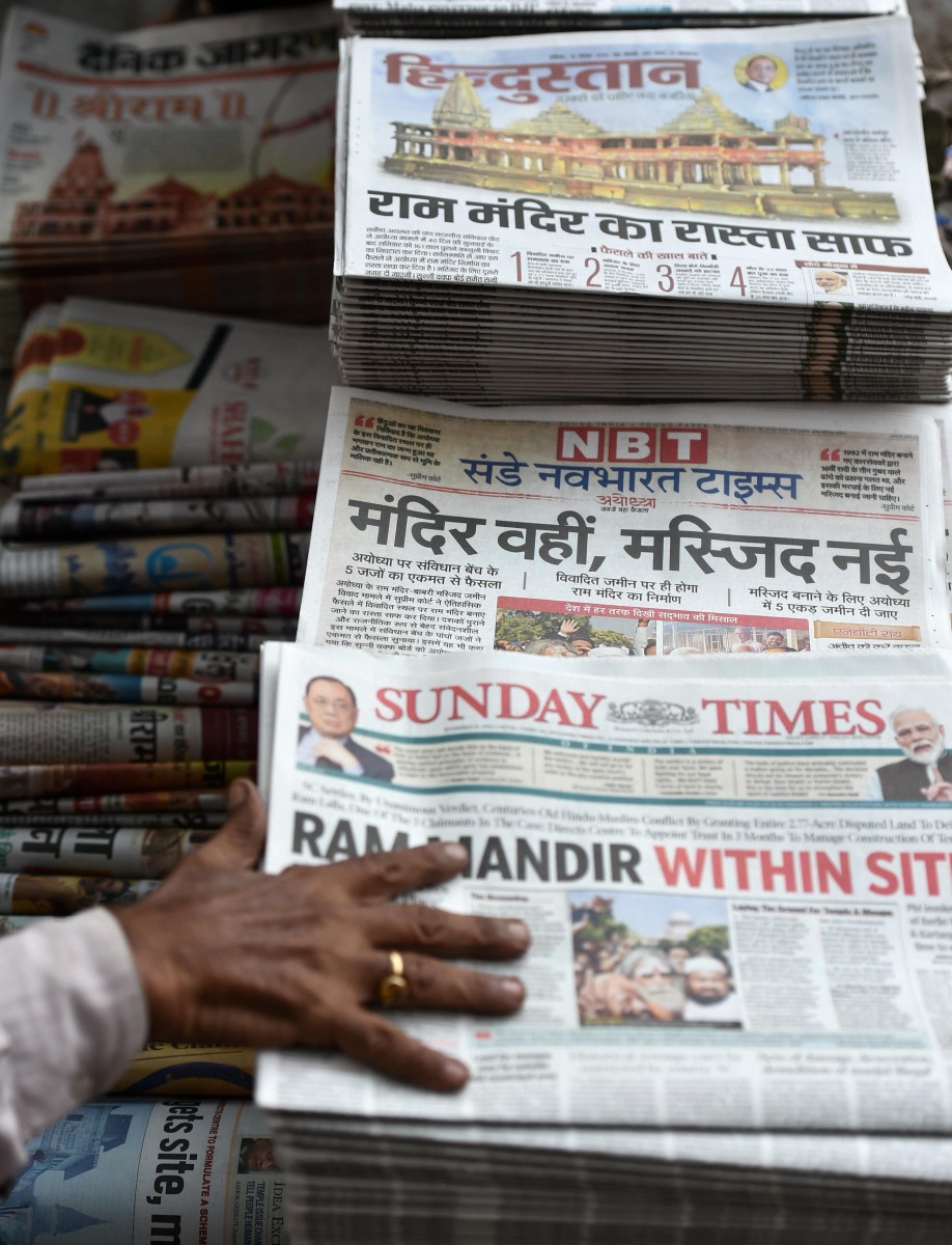 Newspapers being sold in New Delhi a day after the Ayodhya verdict. Photo: PTI