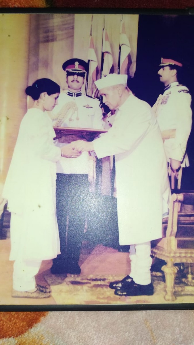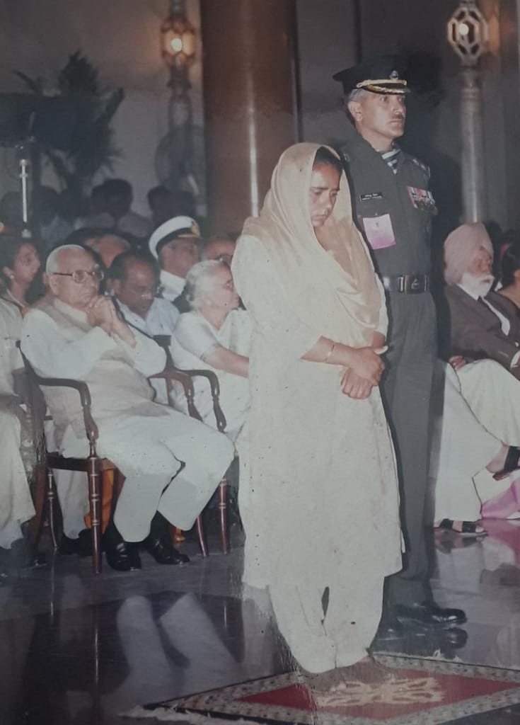 Naib/Subedar Baldev Raj's wife receiving the Kirti Chakra from the then president of India. Photo: Special arrangement
