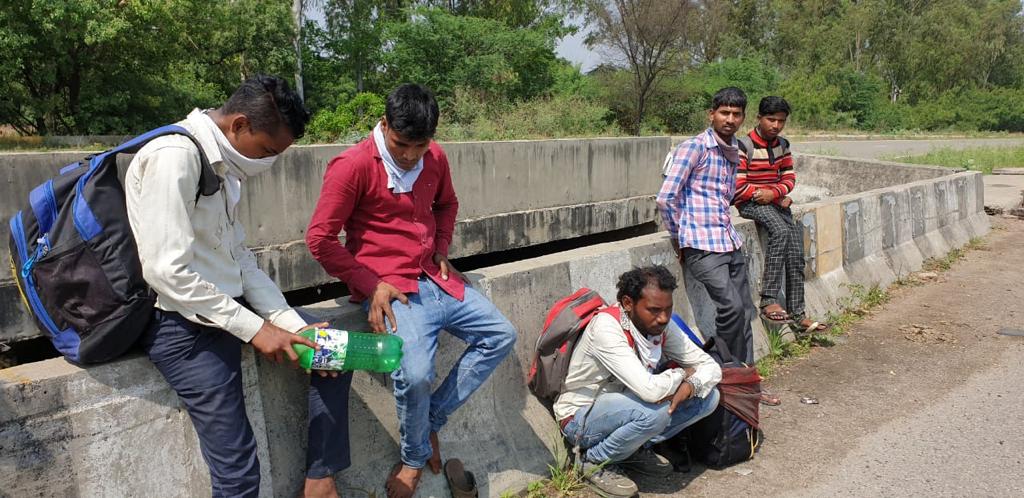 Migrant workers who are walking home.