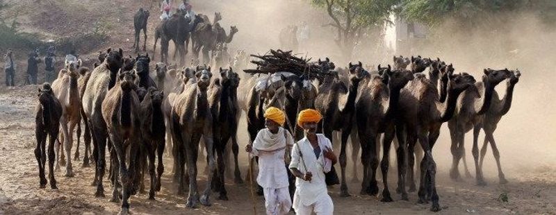 Camel herders arrive at Pushkar camel fair in Rajasthan. Credit: PTI